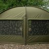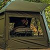 Quattro finestre in rete con colorazione Camo consentono il libero ricircolo di aria e l’accesso interno alle finestre principali del bivvy in rete.