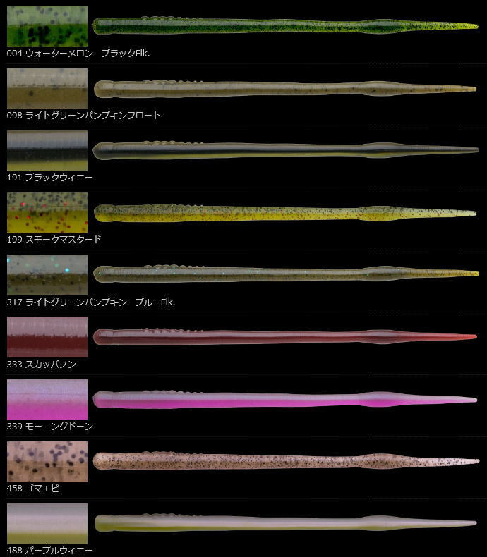 Hassun è nato mentre Tetsuo Tanabe una volta gareggiava nella massima categoria BASS americana. “8” Futohasun è un capolavoro che è stato rispolverato per adattarsi alla scena moderna, con l’aneddoto di Tetsuo Tanabe che risponde alla domanda di un intervistatore sul palco più alto del mondo con “8 sun”. Il design di base è Hassun SF, che ha molti risultati. Il corpo affusolato originale di moderato spessore amplifica e fa appello anche alle più piccole vibrazioni.Si presta a molteplici rig come jig head, Texas rig, down shot rig, cat rig. Un’esca morbida lunga e dritta in grado di catturare grandi Black Bass su laghi ad alta pressione che galleggiano su spot verticali come moli, alberi in piedi e moli, questo è il Futhasun “8”.