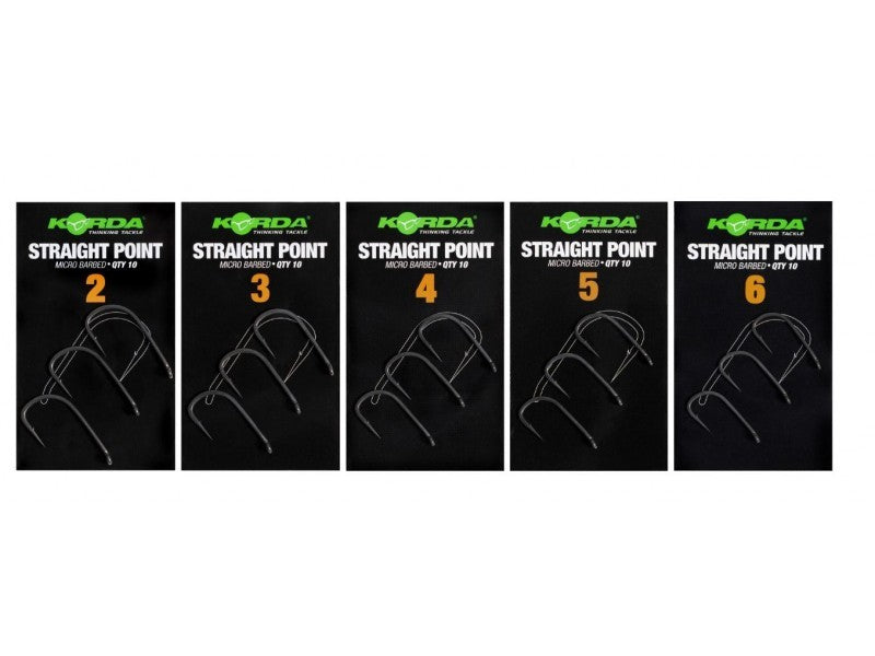 Gli ami Straight Point sono disponibili nelle misure 2, 3, 4, 5, 6 con e senza ardiglione e sono forniti in confezioni da 10.