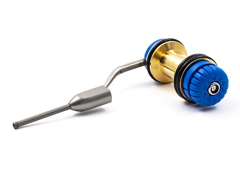Bobinatore speciale per la realizzazione del nodo tipo PR ed impiombature “serving” . Costruito in acciaio inox ergonomico e compatto munito di una precisa frizione che permette un agevole funzionamento. Il tubetto scorrifilo ha alla sua estremità una boccola in metallo duro resistentissima all’usura e agli urti. Munito di due bobine di diverso peso che permettono il tensionamento ideale della legatura. Ciascuna bobina ha degli anelli in gomma fermafilo che, in caso di caduta del Rotoknotter, servono ad evitare danni alla barca. Fornito completo di istruzioni per l’uso.